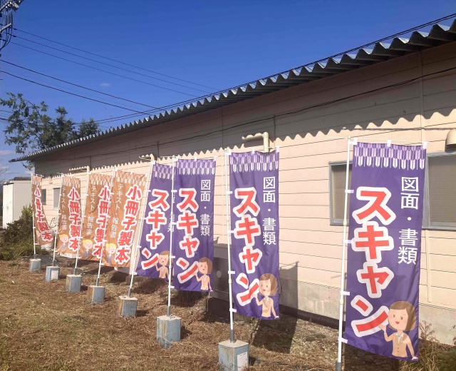 弊社、外掲示用のぼりを新調しました。 今回は「図面・資料スキャン」「小冊子・製本」に絞った掲示です。 「社内で眠り続けている書類・図面箱」ありませんか? 「部屋として使いたいけど書類が占めている倉庫部屋」ございませんか。ESプリントなら「現地確認・見積出し・受け取りスキャン・納品」の一連を請負いたします